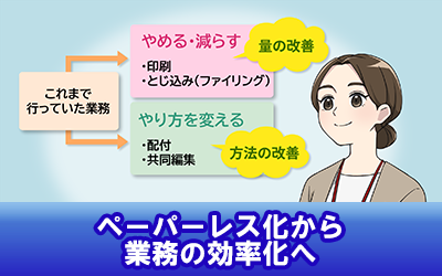 (業務の効率化) - 研修資料などの印刷物の量を減らすことができます。