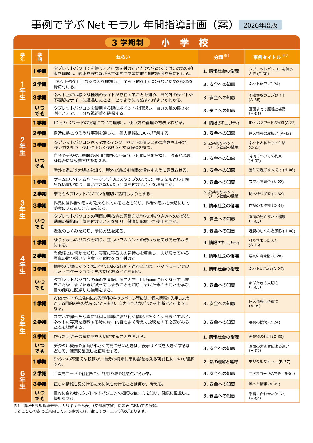 プレビュー:年間指導計画(案)【3学期制】小学校版