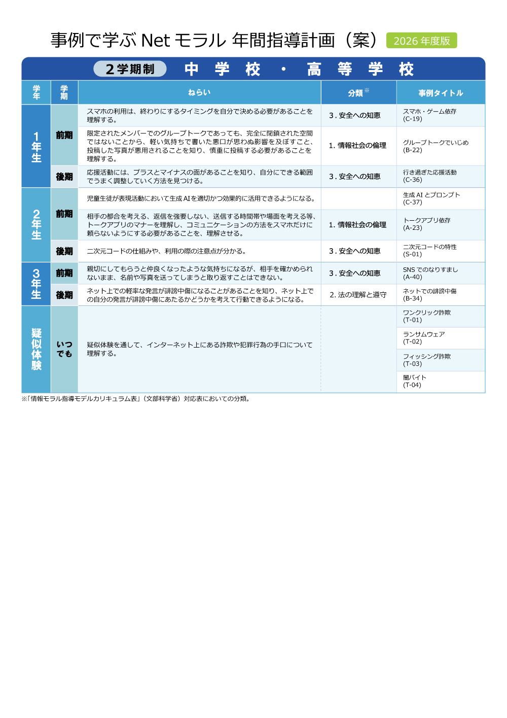 (PDFファイル 公開日:2026年4月1日)年間指導計画(案) 【2学期制】中学校・高等学校版